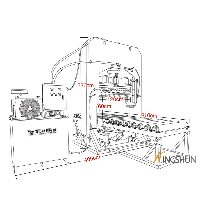 The hydraulic stone splitting Machine KSL-612YY with a features retractable floating cutter teeth, where each cutter tooth operates independently. This design allows it to adapt to a variety of uneven stone surfaces, ensuring precise and efficient processing. Primarily used as a key machine in a splitting line, it produces semi-finished split stones or finished products like large kerb stones and wall stones.